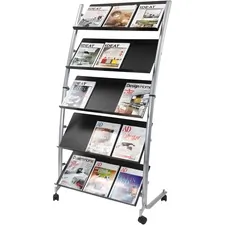 Display a wide range of literature on this Large Mobile Display with up to 15 A4-size brochures or magazines tempting your guests. Large capacity allows immediate identification of your publications or documents. Each of the four roller casters including two with brakes allow easy mobility to give you the option to move this display from room to room. Large-capacity shelves can hold three 350-page literature items per shelf.