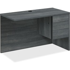 Left return with 3/4 pedestal is a part of HON 10500 Series Wood Laminate Furniture. To create an L-shaped layout, use with the 10500's right-pedestal desk. It can also be used with desk shells, peninsulas and corner units. Left return with formal, full-height modesty panel features one box and one file drawer. Locking drawers offer five-sided construction for easy drawer alignment. Interchangeable, core-removable lock makes rekeying quick and easy. Box drawer operates on ball-bearing suspension with 3/4 extension. File drawer extends fully on ball-bearing suspension. Included hangrails are designed for side-to-side letter-size or legal-size filing and front-to-back letter-size filing. Top and end panels are made with durable, thermal-fused laminate over durable, 1-1/8" thick, solid-core high-performance particleboard and resist warping, scratches and stains. One-cord, pass-through, 3" grommet in the top is designed to reach electrical wall outlets while routing wires and cables.