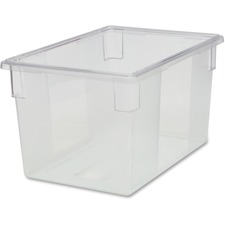 Organize your kitchen with this durable Food/Tote Box that is stackable, nestable and easy to clean. Food/tote box can reduce food spoilage costs. Date control panels on the clear box and lids (sold separately) allow easier inventory control to maintain safe food-handling practices. Labeling encourages proper food rotation. Box holds up to 21-1/2 gallons and accepts tight-fitting, snap-on lids to keep food fresh. Temperature range is from negative 50 degrees to 212 degrees Fahrenheit. Dishwasher-safe, freezer-safe box assists in complying with HACCP guidelines. It is made of FDA-compliant materials. Clear, break-resistant polycarbonate provides visibility, durability and stain-resistance. It is certified to NSF Std. No. 2 for safe food contact. Box stacks with other Rubbermaid Commercial Food/Tote Boxes and stays put with an interlocking ridge system.