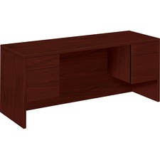 Kneespace credenza with 3/4 pedestal is part of HON 10500 Series Wood Laminate Desking that offers practical functionality and uncompromising durability. Durable, 1-1/8" solid-core, high-performance particleboard resists warping. Laminate is scratch-resistant, stain-resistant and spill-resistant. Credenza features one box and one file drawer in each pedestal. Drawers lock and offer five-sided construction for easy drawer alignment or replacement of drawer fronts. Interchangeable, core-removable lock makes rekeying quick and easy. Box drawers operate on ball-bearing suspension with 3/4 extension while the file drawers extend fully on ball-bearing suspension. Included hangrails are designed for side-to-side, letter-size or legal-size filing and front-to-back letter-size filing. Formal, full-height modesty panel features one-cord, pass-through the grommet in the top center for easy access to wall electrical outlets. Credenza is not designed to be used with modular or mobile pedestals.