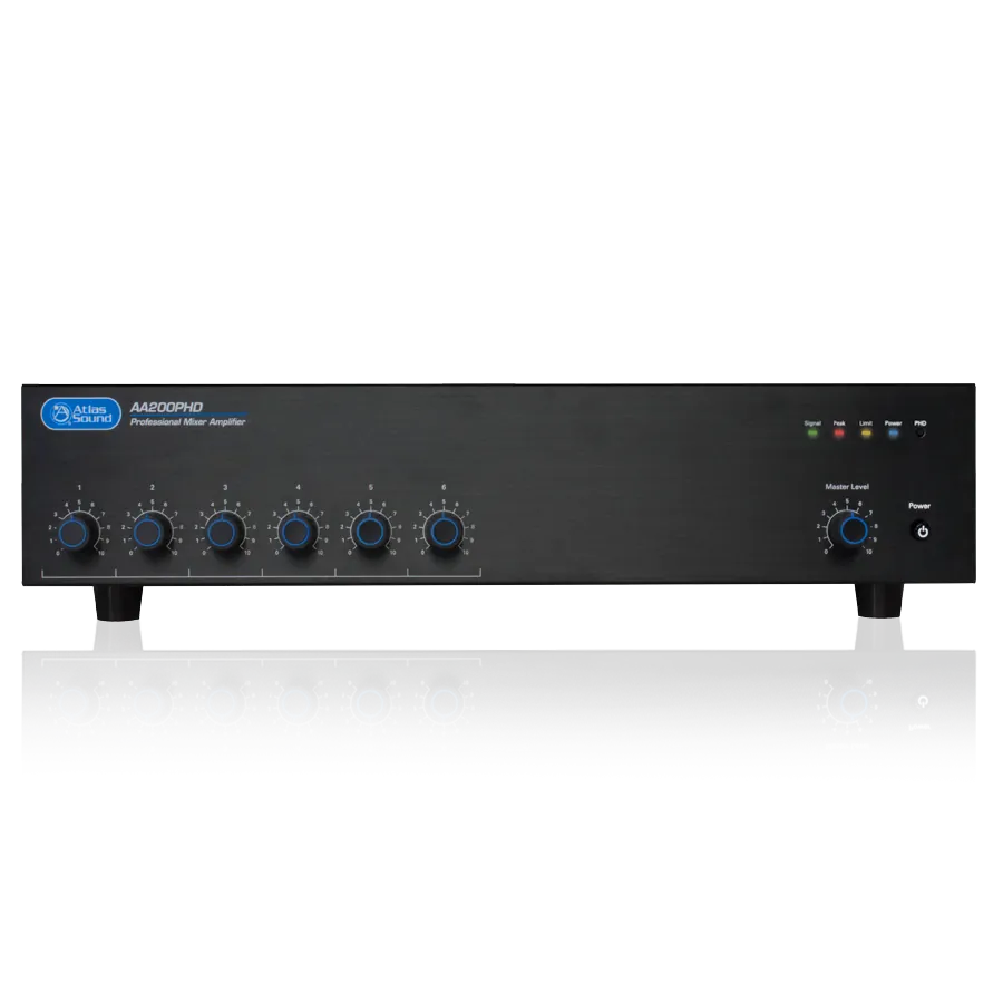 Optional Rack Mount Kit Available - Model AARMK2-0 AA200PHD Mixer Amplifier 6 Input 200 Watt Automatic System Test PHD AMPLIFIER WITH AUTOMATIC SYSTEM TES