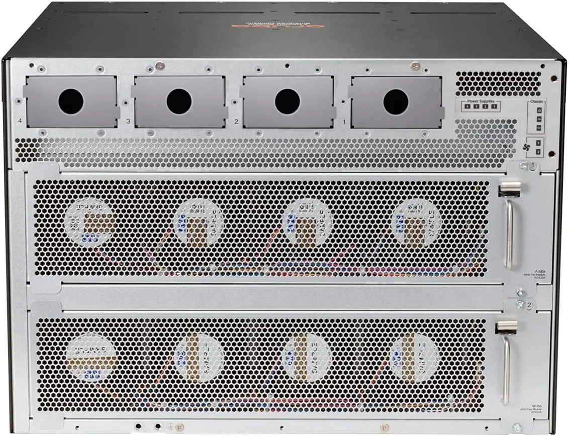 The HPE Aruba Networking CX 6405 v2 Switch is a state-of-the-art modular Layer 3 switch designed for enterprise network deployment in campus and data center environments. It features a cloud-native design and is part of the Aruba CX 6400 Switch Series, equipped with a fully programmable AOS-CX operating system and the advanced Network Analytics Engine (NAE) for enhanced monitoring and troubleshooting. This switch offers a 5-slot chassis for flexibility and scalability, providing support for various line cards enabling connectivity options such as 1GbE, 10GbE, and up to 100GbE, including Smart Rate multi-gigabit connectivity with PoE capabilities. It supports a broad range of advanced routing protocols and security features, ensuring robust and secure performance across the network. Its efficient architecture designed with Gen7 ASIC technology guarantees low latency and high throughput, making it an ideal solution for organizations looking to modernize their network infrastructure.