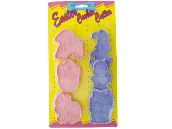 Create delightful Easter treats with our 6-piece Easter Cookie Cutters Set. This charming set features shapes including a lamb, bunnies, chicks, and an Easter basket filled with eggs. Each cookie cutter measures approximately 3" to 4" x 2" to 3" and is crafted from durable plastic. Perfect for baking and decorating fun holiday cookies!